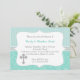 Create a memorable experience on Baptism Day with this turquoise, cross styled invitation card. Welcome the experience of inviting guests, such as godparents and family to join you on Christening Day to celebrate your infant's blessing. Prepare your own invitation card by personalising it according to your requirements. Enjoy.