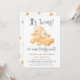 Twins Bear We Can Bearly Wait Baby Shower invitation features an adorable bear-themed design, showcasing two cub bears in an illustration. The text says, "It's twins! We Can Bearly Wait!" This invitation is perfect for hosting a gender-neutral shower.