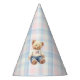 These party hats feature a timeless teddy bear design with pink and blue plaid accents, perfect for a coordinated twins Beary First birthday celebration.