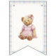 This Happy Birthday bunting banner features a classic teddy bear design with pink and blue plaid details, created for a timeless twins Beary First birthday celebration.