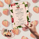 Perfect for a berry sweet twin girl baby shower invitation—this strawberry-themed event is ideal for a spring or summer baby shower. Berry sweet strawberry pattern with two twin berries on top. Blush pink background.