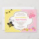 Cute split invitation for twins / siblings / single child, in dual / duo theme: bee & butterfly