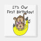 Twin boy and girl monkeys and a big banana are featured on twins 1st Birthday T-shirts, bodysuits, cards, mugs, tote bags, stickers, and much more!