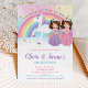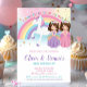 Whimsical Twins Princess and Unicorn Birthday Party Invitation, featuring a rainbow unicorn and lovely princesses. Personalise this awesome Princess and Unicorn Party Invitation with your party details easily and quickly, simply press the customise it button to further re-arrange and format the style and placement of the text. Exclusive design (c) The Happy Cat Studio. Matching items in store!