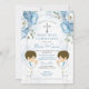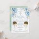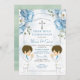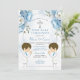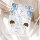 Twins Dusty Blue Flowers Boys First Holy Communion Invitation