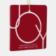 This twin's cute keepsake Christmas photo ornament is decorated with the word JOY in white typography on a red background.