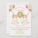 Twins Pink Gold Floral Bunny 1st Birthday Invitation