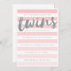 Twins Pink Striped Baby Shower Invitation