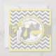 Sweet polka dot print jumper tutu and jumper with tie on clothesline and 3D-look bow and ribbon for twin girl and boy baby shower invitation card. Colours are yellows and greys.