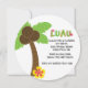 Start your celebration off right with this adorable Luau invitation. Whether it's a backyard barbecue or a kids or twins birthday party this is the perfect invite for you! There is a tiki hut with a grass roof. There's an adorable Hula Girls standing next to the hut. She's wearing a grass skirt and has a flower in her beautiful blonde hair. On other side is a hawaiian boy with brown hair holding a guitar. On the back of invite is a palm tree in the left corner. In the top centre there is the word "luau" with a red hibiscus flower. Personalise with your party information under it. Personalise this invitation for your luau! Check out the many other designs and products in this line.
