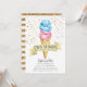 Cute ice cream theme twin girl and boy birthday party invitation card featuring watercolor illustration of pink and blue ice creams on waffle cone. There are faux gold sprinkles around. The text in the banner says "two scoops are better than one." Perfect for a boy and girl's birthday in the summer.