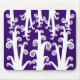 A mouse pad with an interesting decorative drawing of unusual twirly looking plants.
