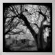 Twisted cemetery tree with crow in black and white. Copyright©Gothicolors All Rights Reserved.