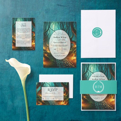Celebrate your love with this magical enchanted forest wedding invitation, featuring a glowing lantern-lit path winding through a dreamy woodland setting. Perfect for romantic, whimsical, and nature-inspired weddings, this design creates an unforgettable first impression for your special day.