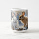 Two Adorable Bunny Rabbits Brown and White in Snow Coffee Mug