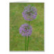 Two beautiful allium stand tall together in my mother's garden. The purple and greens in this photograph make for a very soothing picture. Perfect as a sympathy, get well, and all occasion card.