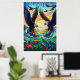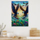 Two Bald Eagles Catching Fish Over a Vibrant River Poster