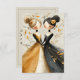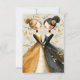 Cute wedding response card for Lesbian, LGBTQ couple. Two hand drawn brides holding hands stand side by side in a garden of golden yellow leaves and vines. They have their hair up and pink roses in their hair, cute pencil drawing for your special day.