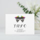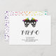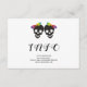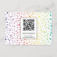 Two skull brides and confetti in rainbow colours Halloween lesbian wedding details and info card. This wedding design features the skulls of two brides with bows in rainbow colours and colourful confetti around it. The back includes a pattern of colourful confetti and a QR code for scanning and visiting the wedding website.