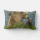 Two Brown Bear Cubs with Mother by the Water Lumbar Cushion