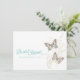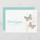 Double-sided graphic butterflies on swirl stylised wild flowers wedding bridal shower invitation. Part of two butterflies wedding stationary set. Pretty in white, mint, brown and pink shades. Edit this wedding bridal shower invite with your own name, dates, and wording . Simple modern and romantic wedding bridal shower invitation. Inked swallowtail and painted lady butterfly art and stylised graphic wild flowers by Sarah Trett.