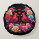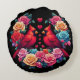Two Cardinals with Colourful Roses and Hearts Round Cushion