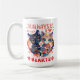 Two adorably designed cats, one black and one orange, are depicted surrounded by vibrant patterns and hearts, evoking a sense of warmth and affection. On this Christmas coffee cup mug.