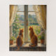Two Cats sitting in a bay window seat Jigsaw Puzzle