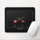 Two Cherries - Two sweet cherries (prunus avium regina) in vivid green and purple photographed against a plain black background.