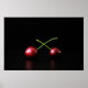 Two Cherries - Two sweet cherries (prunus avium regina) in vivid green and purple photographed against a plain black background.