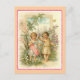 Beautiful vintage image of two cherubs in a lovely garden full of flowers - lily-of-the valley and lilac - with a tall pink rose bush behind them.