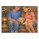 Bring a gentle, heartwarming touch to your dining space with this beautifully designed tablecloth featuring two children sitting close together with a sleeping puppy nestled between them. Soft lantern light, rustic wood textures, and delicate floral details create a peaceful, cozy atmosphere that feels like a quiet moment captured on a front porch.