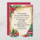 Two little evergreen trees in the snow are surrounded by brightly wrapped gifts on this beautiful Christmas party invitation. Remove the text, and this would be perfect for a holiday newsletter.