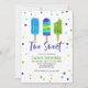 Watercolor ice pops Two Sweet 2nd birthday party invite in blue and green colours.