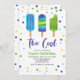 Watercolor ice pops Two Cool 2nd birthday party invite in blue and green colours.