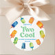 Two Cool Blue Retro Popsicle 2nd Birthday Party Classic Round Sticker