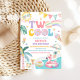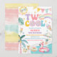 Celebrate your childs special day with this vibrant "Two Cool- pool party birthday invitation! Featuring playful summer illustrations like rainbows, flamingo floats, ice cream cones, popsicles, and tropical palm leaves, this design sets the perfect tone for a fun-filled celebration. Bright colours and festive details make it ideal for a second birthday party by the pool. Personalise with your event details to create a unique, eye-catching invitation that guests will love. Perfect for summer birthdays, tropical themes, and poolside gatherings.