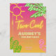 Two Cool Tropical Pink Neon Pool Party Invitation
