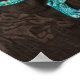 A detailed, embroidered textile featuring two fierce, turquoise-blue panthers in a dynamic, mid-air struggle against a dark brown background. The design showcases intricate stitch work and shadows, highlighting the intense, aggressive posture of the felines.