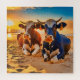 Dive into the fun of assembling this unique jigsaw puzzle featuring two cows relaxing on a sunset-lit beach. With the sky's vibrant mix of orange, yellow, and blue, and the sandy beach underfoot, this puzzle brings together the charm of pastoral life with the tranquillity of a seaside sunset. Each piece will reveal more of this enchanting scene, perfect for puzzle enthusiasts looking for a blend of nature's beauty and playful surprise.
