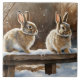Two Cute Bunny Rabbits on a Bench in Snow Ceramic Tile