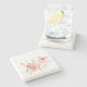 The coasters are gorgeous, a quality feel and heavy weight. They look like a precious archeological find. A rustic stone juxtaposed with a modern floral black and white print. I like the way the print goes slightly imperfect on the cut stone edges giving them a kind-of natural beauty.
