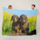 Two adorable wild boar coloured wire haired dachshund dogs side by side in front of yellow flowering rape blossoms. A cute funny doggy photo taken by Katho Menden. This soft and cosy fleece blanket is a gift idea for dog lovers. http://www.zazzle.com/kathom_photo