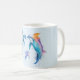 Abstract illustration with two cute blue dolphins with orange and purple splatters
