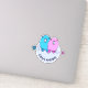 Your name and knitting are teamed with two cute and fluffy cartoon style sheep, one blue and one pink, each with a ball of wool, on this contour sticker. You can change the words and add your name.