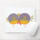 Cute Mouse pad with two cartoon love birds beak to beak showing their love.