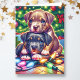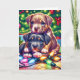 Two Cute Puppies Playing under the Christmas Tree Holiday Card