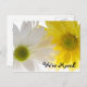 Announce your new address and phone number with the cheerful Two Daisies Change of Address Postcard. Customise it with all of your new contact information and name on the back. This cute custom flowery new address announcement features digitally painted floral photograph of one yellow daisy and one white daisy flower blossom on a white background.