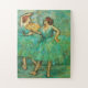 Two ballet dancers in green dresses impressionist pastel painting by Edgar Degas (1834–1917), a French artist famous for his paintings, sculptures, and drawings, and a prominent representative of the impressionist movement.