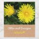 Two bright yellow dandelion flowers nestle in amongst leaves. One dandelion flower is fully open and the other emerging from a bud. This dandelion wedding product can be personalised add the names of the bride and groom, and wedding date. Dandelion is a common wildflower which flowers in spring and summer, this photo of dandelions was taken in Spring.